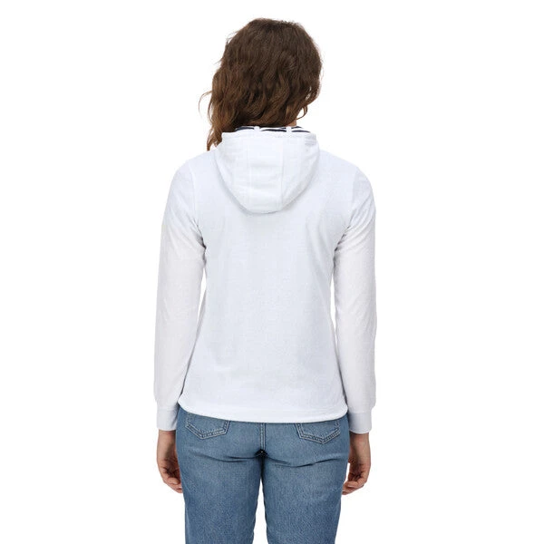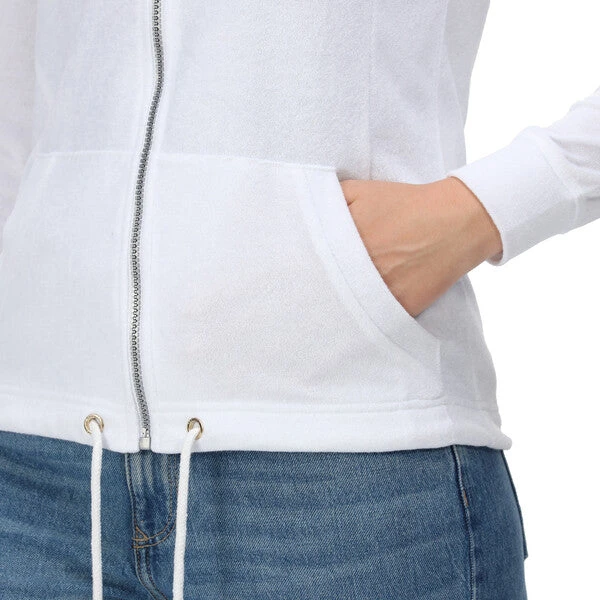 The Regatta Women’s Bayarma Full Zip Hoody is super soft, breathable and stylish, it’s the perfect summer midlayer. Featuring Regatta’s Coolweave sustainable cotton, the women’s zip-up jacket provides a soft and breathable layer. The kangaroo pocket to the front brings a relaxed look. Pop the cotton jacket on over a t-shirt in the summer for an extra layer of warmth. The hood is finished with a trendy stripe jersey lining.